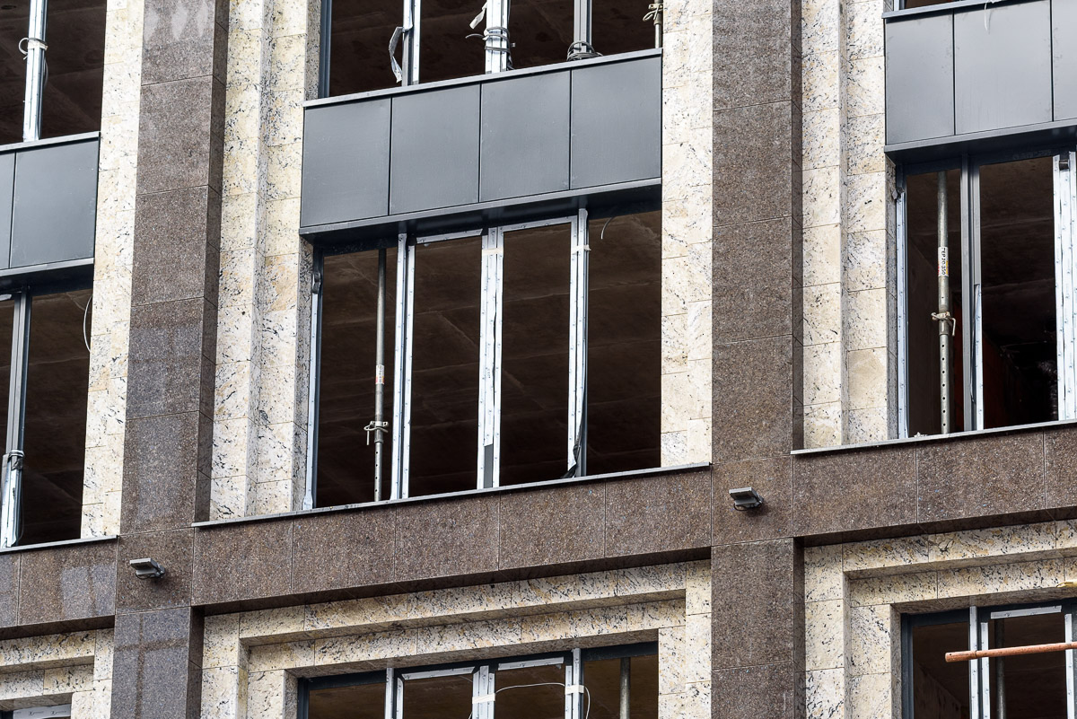 Кстати, фасад со стороны соседней «Субботы» уже полностью укомплектован норвежским темным гранитом Labrador Antique и бразильским светлым Delicatus White. Так что уже сегодня вы можете полюбоваться фасадами нашей «Оливки» почти во всей красе.