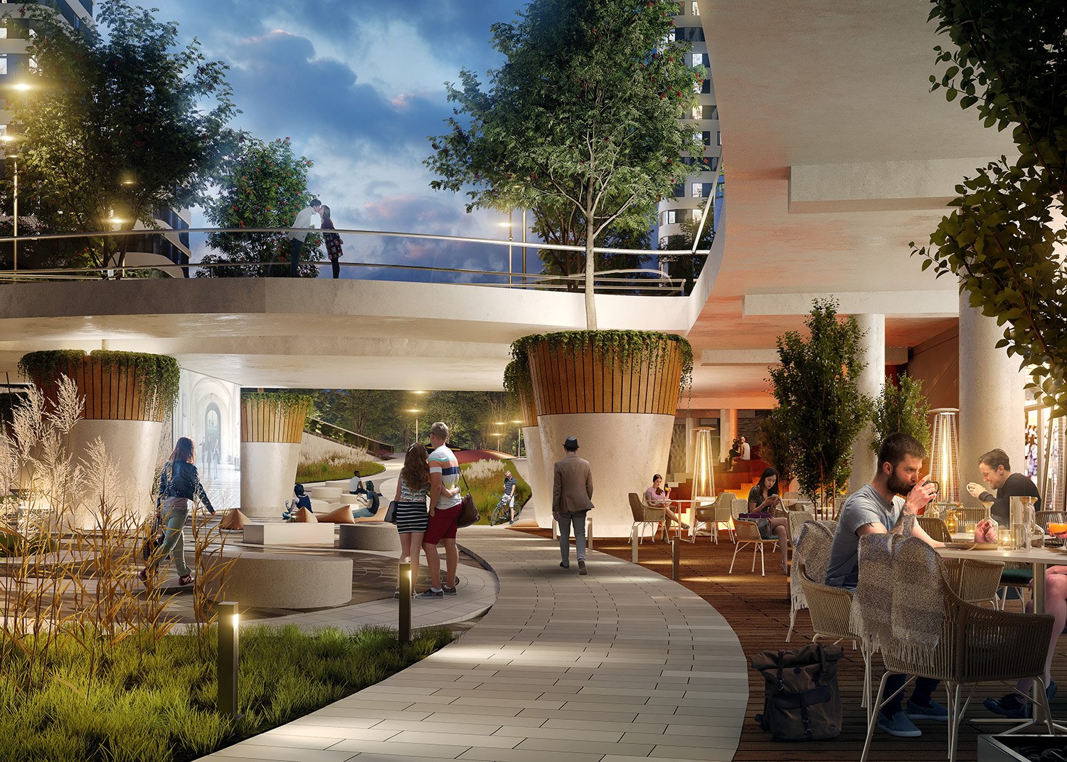 Во-вторых, это будет не просто мост, а настоящий арт-объект, формирующий крытое общественное пространство прямо в сердце парка «Зеленая река».