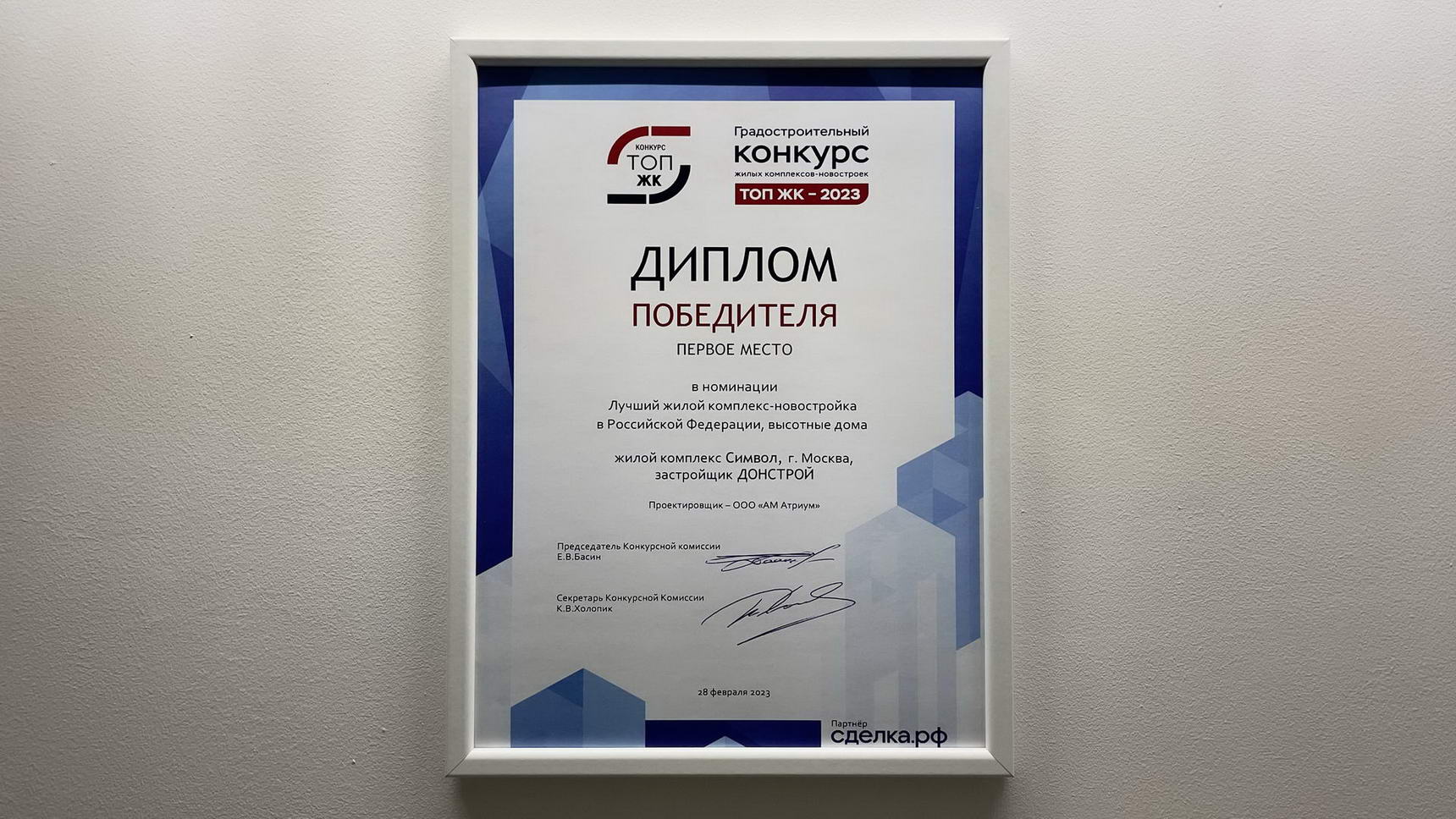 Проект «Символ» занял первое место в категории «Лучший жилой комплекс-новостройка в Российской Федерации, высотные дома». В номинации «Лучший жилой комплекс-новостройка в Старой Москве, доступное жилье» «Символ» удостоился второй позиции. Квартал «Событие» вошел в топ-3 номинаций «Лучший проект в Российской Федерации, редевелопмент территории нежилой застройки» (2-е место) и «Лучший жилой комплекс-новостройка в г. Москва» (3-е место).