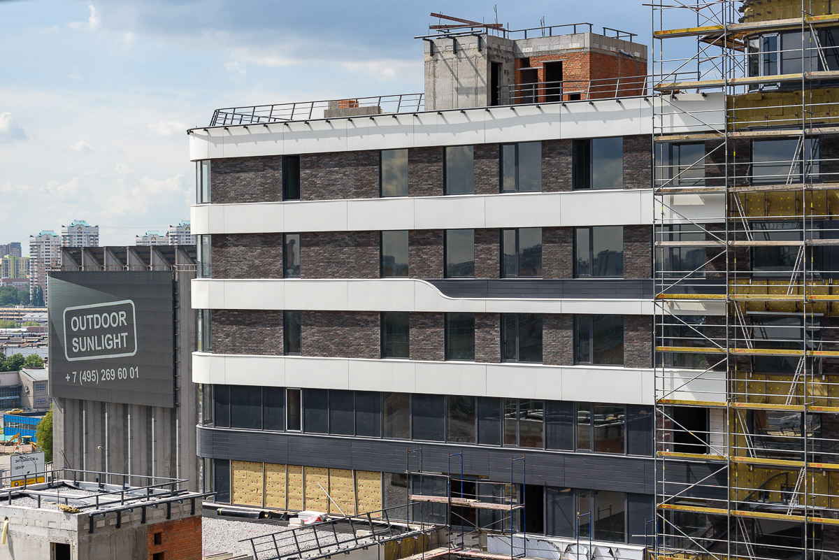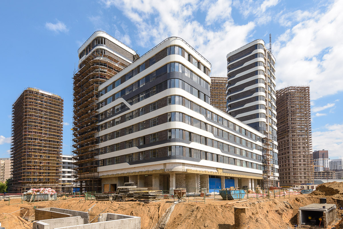 Москва, Россия. 27 июля 2018 года. – В квартале «Свобода», входящем в первую очередь проекта «СИМВОЛ», выполнено 50% фасадных работ. Общая площадь фасадов всех пяти корпусов «Свободы» - около 78 тысяч кв.м, из них 39 тысяч кв.м уже полностью готовы. Вентилируемые фасады зданий облицовываются декоративной фасадной плиткой White Hills и пластичными композитными панелями «Краспан».