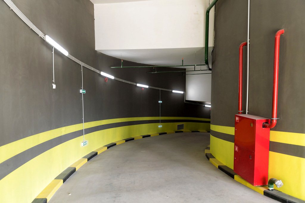 Подземный паркинг, хоть и не является таким «лицом дома» как входная группа, тоже должен радовать глаз – ведь автовладельцев ежедневно будет встречать именно это пространство. В 6 корпусе паркинг оформлен в контрастных графитово-желтых цветах. На въезде в паркинг установлена система автоматической мойки колес – специальные фотоэлементы фиксируют заезд автомобиля и подают сигнал вмонтированным в пол и в боковые стойки омывателям. Помимо поддержания чистоты в паркинге, эта система поможет продлить жизнь шинам, ежедневно очищая их от грязи и зимних реагентов.
