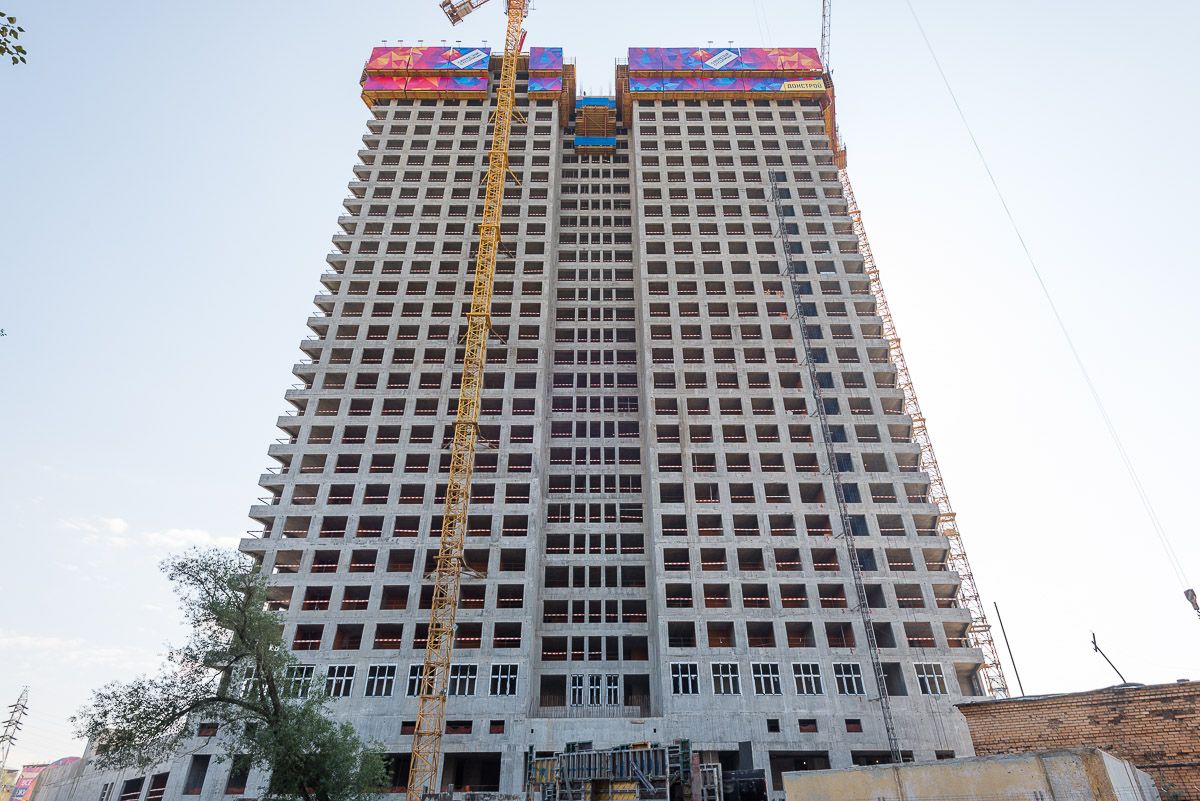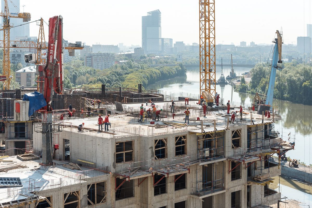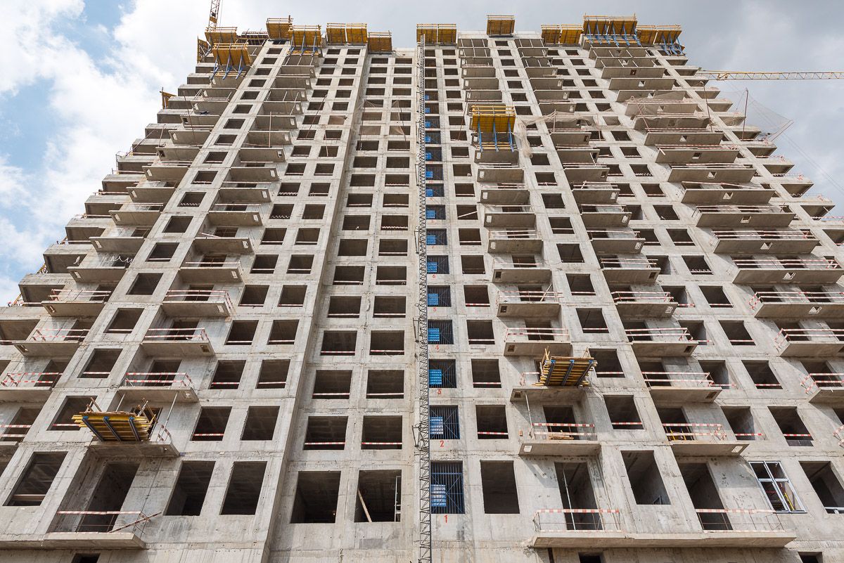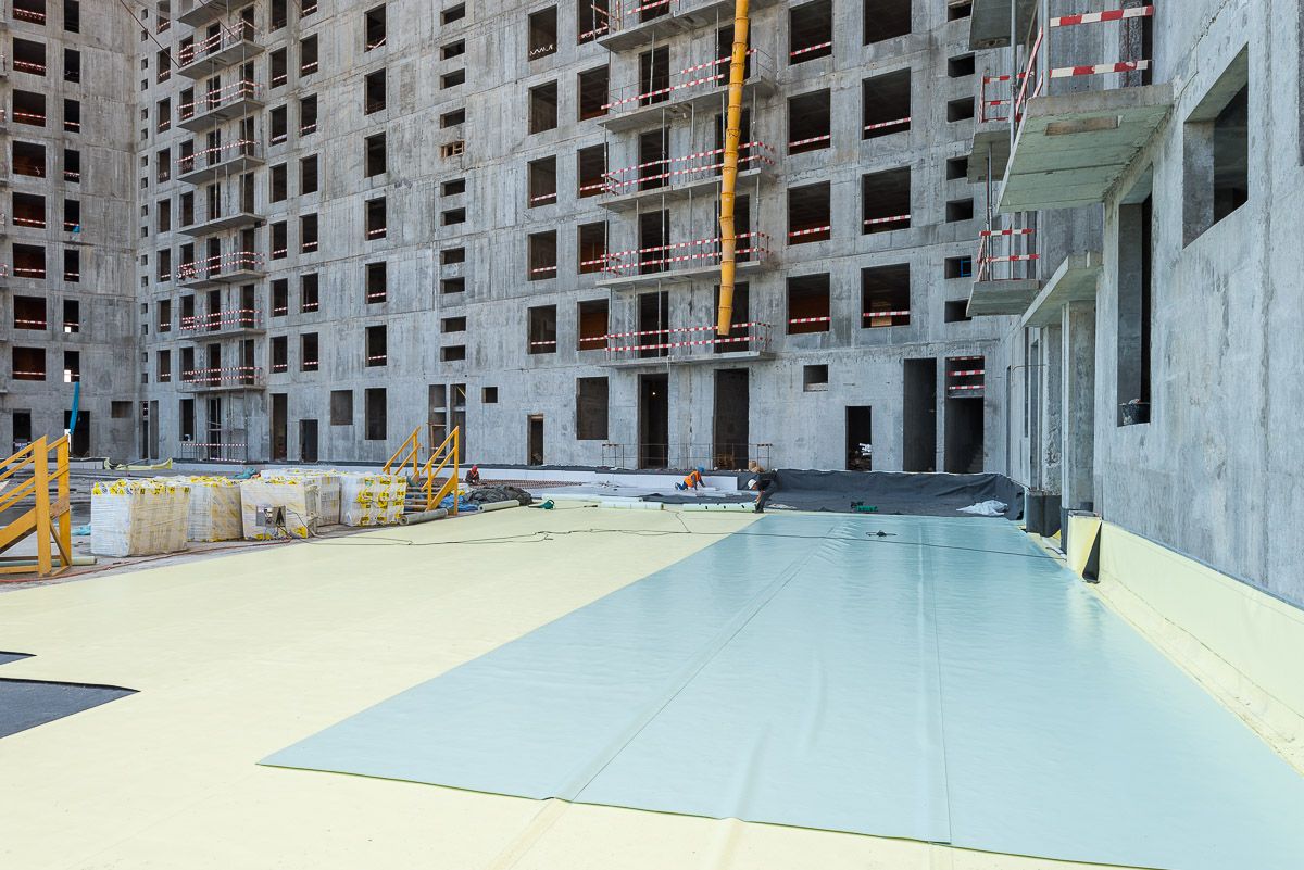 В целом по первой очереди строительства объем выполненных монолитных конструкций надземной части превысил 58 800 куб.м, что составляет 77% от общего проектного объема работ выше «нулевой отметки». Односекционный корпус №1 преодолел отметку 29-го жилого этажа – здесь строители уже приступили к установке лесов для последующей отделки фасадов. По 4-секционному корпусу №2 монолитные работы вышли на уровень 9-12-го жилого этажа. Также начаты работы по гидроизоляции кровли стилобата, где в дальнейшем будет произведено благоустройство и озеленение придомовой территории.